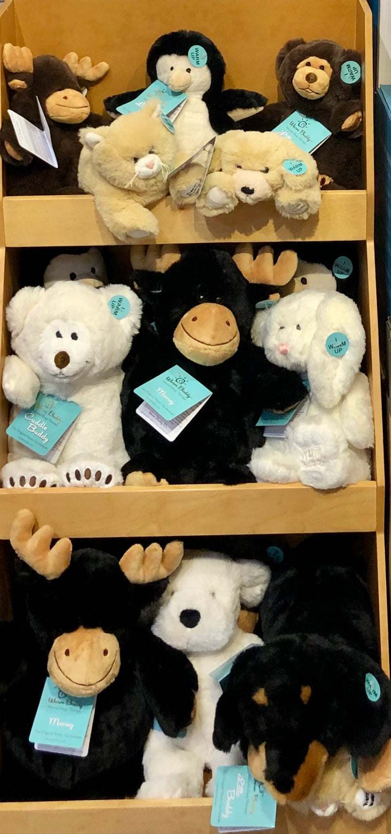 These versatile, super soft and adorable animals have a all-natural removable heat pack inside that is microwaveable and turns them into a Warm Buddy to snuggle with after outdoor activities, sports and at night. Add some aromatherapy like eucalyptus oil to help with colds and flu or lavender oil at bedtime. The gentle warmth helps settle children so they can achieve a good nights sleep.