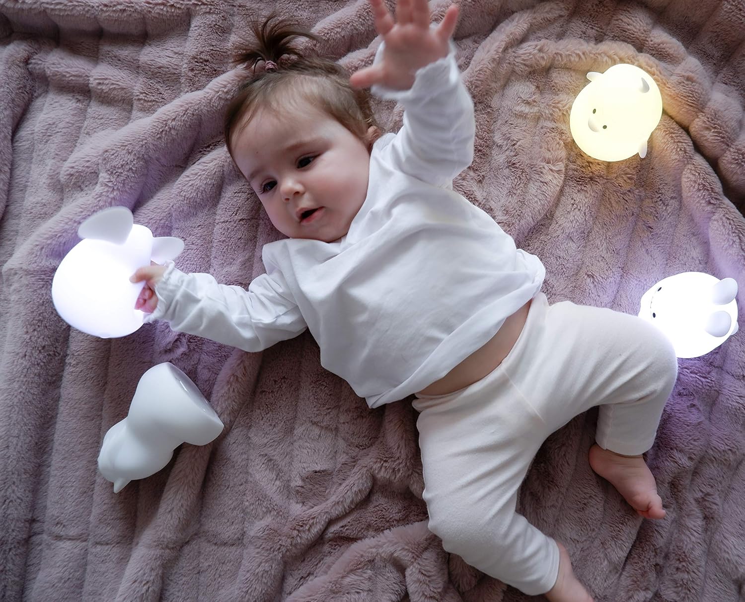 These adorable night lights in the shape of the prettiest bunny, mouse and unicorn you have ever seen, are here to join the invincible team of Mallow Pets! When turned on, the lights emit a soft warm light that can be switched to an automatic color-changing mode that softly cycles through 8 colors, or the night light maybe set to stay on a single color.
