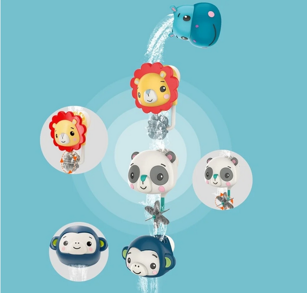 Make bath time fun with this brilliant set of waterfall bath toys by Fisher Price! 4 different colorful animals that are designed to spray water into the bathtub, will make your children fall in love with bath and have a wonderful water experience. Made of non-toxic material, tested to be safe for babies and kids. You can attach the suction cups on the tub or smooth wall in bathroom, fill the hippo with water, pour it into the waterfall and watch the water fall into the tub, creating a magical fountain-like atmosphere.