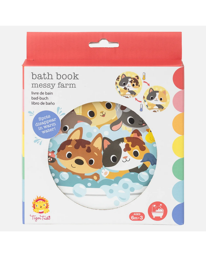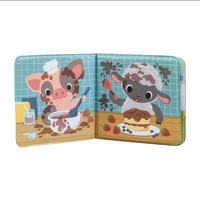 - Cute, illustrated Bath Book with magical 'mud' on Farm and Jungle themed animals