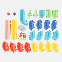 - Fun, STEAM focused bath toy for early learners to construct a unique waterslide marble run